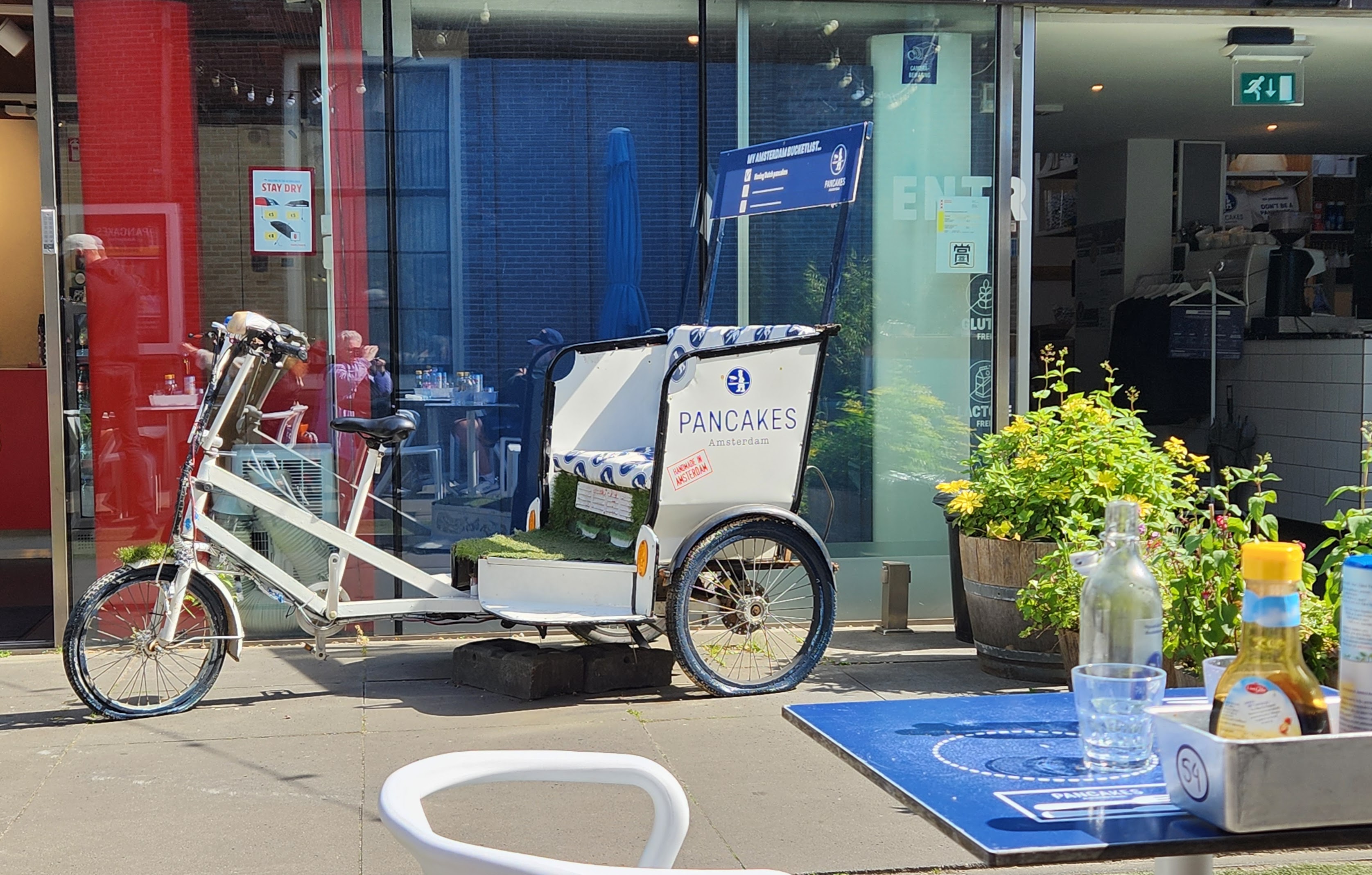 Wayne waited outside and when I returned, we had a late breakfast of Dutch pancakes with apple, raisin, brown sugar mixture and some bacon. It was delicious.